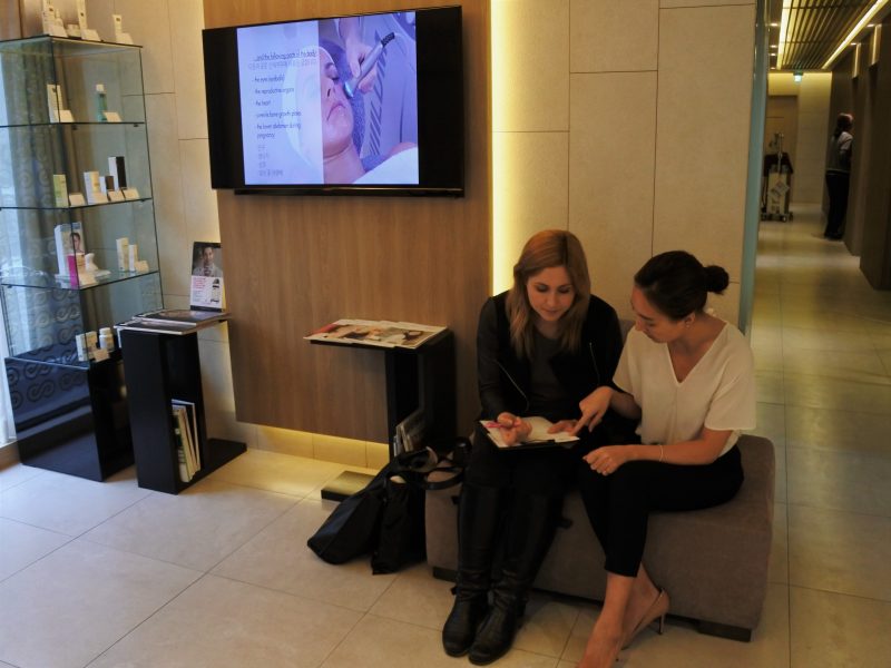MH Clinic is located near ritzy Apgujeong Rodeo and situated directly above a Rolls Royce dealership. When I arrived at the clinic, I was ushered in and invited to take a seat with my personal co-ordinator, Joy Kang. Ms. Kang is the Co-Founder and CEO of Eunogo, and could not have made my experience more personal or relaxed. When you’re about to get needles to your face, it’s nice to have someone who is very attentive, but also keeps her composure completely. I felt at ease in her care.