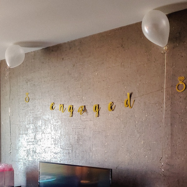 In advance of the big night, I had Bride/ Bridesmaid t-shirts made up and I scoured the internet for the best decor and games which wouldn’t be too lewd. Eventually, I traveled to Oshawa to pick up all the goodies at Party City since the local ones didn’t have the balloons I wanted. Not wanting the bride to have to lift a finger, I sent an UBER to pick her up and transport her to a secret location for blow-outs. Bride has hella long, thick, wavy hair, whereas mine is much shorter and more manageable.