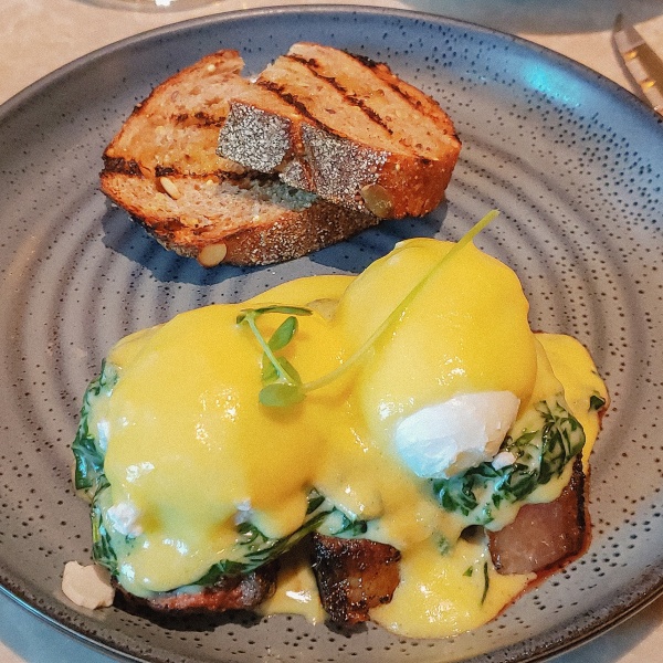 Our entrees appeared on the smaller side, but were served up with incredibly rich ingredients. The Nova Scotia Lobster Rolls came with grainy mustard, lemon aioli, crispy lettuce, and saffron pickled fennel. My Steak & Egg Florentine was New York steak, poached egg, garlic spinach, lemon hollandaise, and toasted pumpkin. The Fried Chicken & Waffle was huge with pepper jack cheese, maple syrup, chicory leaves. I’d definitely go back for the Croque Madame made with black forest ham, Quebec gruyère, creamy cheese sauce, and a poached egg.