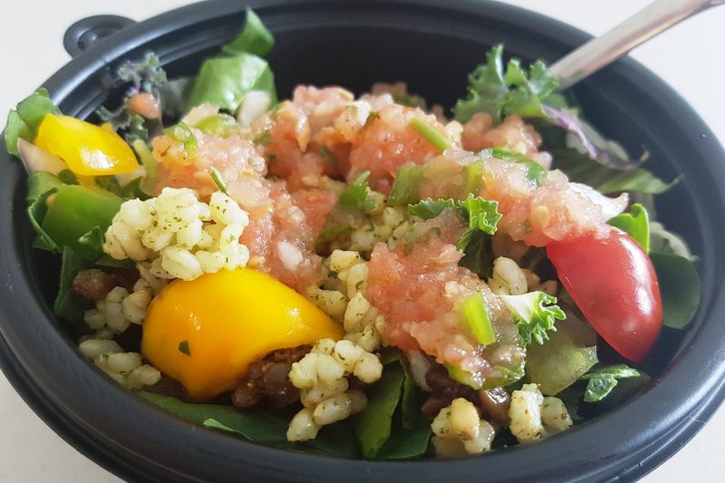 I would definitely order this salad again! There were tons of black olives and not too many red onions. This was another dish I split into lunch and an afternoon snack. The tofu tasted super creamy – more like goat cheese than feta. I didn’t need to use all the dressing. The blend of flavours was enough!